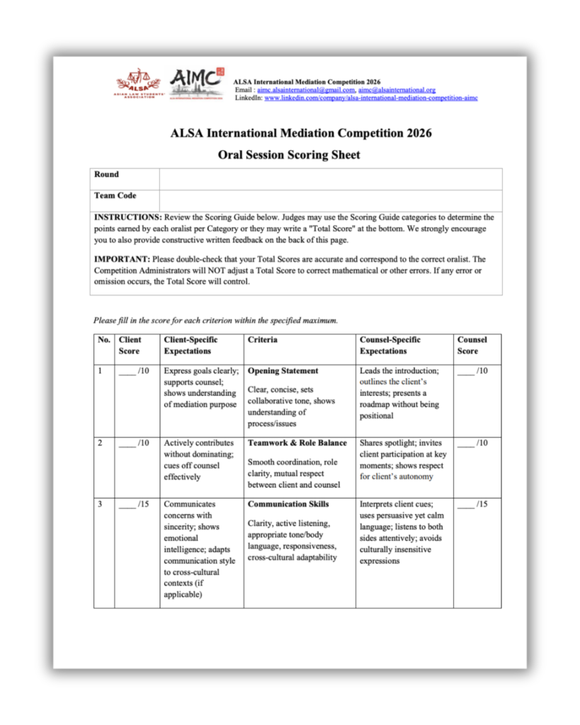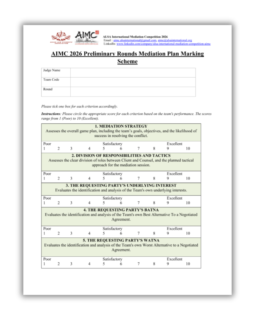 * Please note that the mediation plan sample provided is intended only as a reference. Teams are welcome to use it, but they are not required to do so. The content and structure of your mediation plan should reflect your team’s unique approach and strategy.